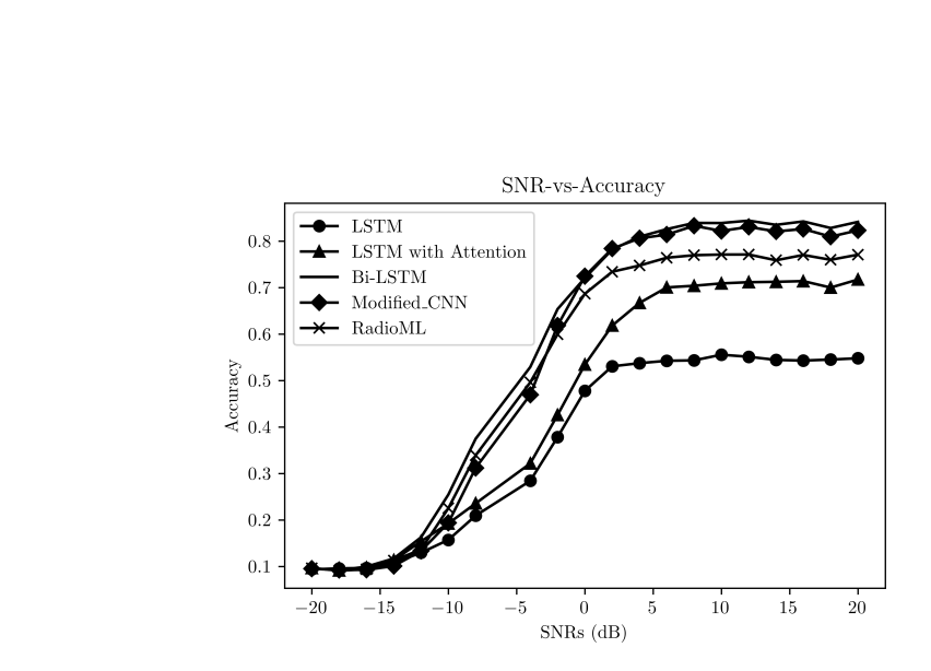 The deep learning based classifiers can classify 11 different modualtion types from their IQ